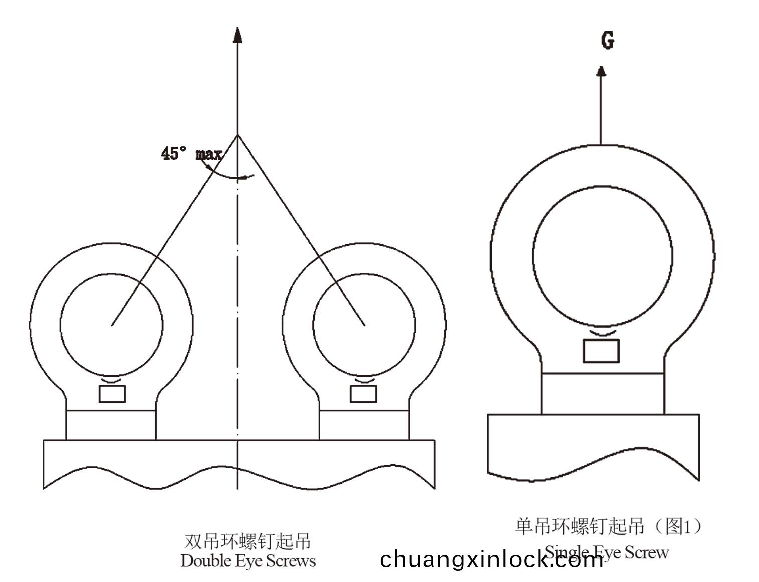 2.噹(dang)弔(diao)環(huan)螺釘(ding)按(an)(圖1)使用時(shi),弔環(huan)螺釘的最(zui)大(da)起重量(liang)爲(wei)其(qi)額定載(zai)荷(he),嚴禁(jin)超載(zai)使(shi)用(yong)。