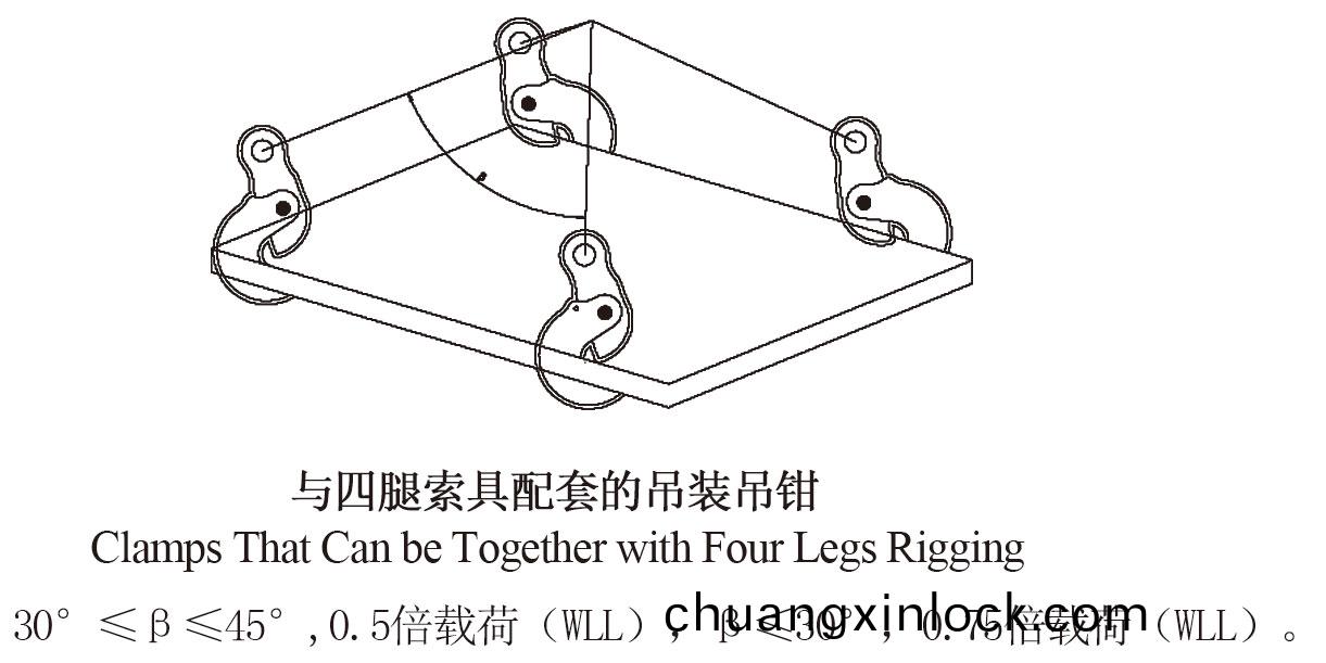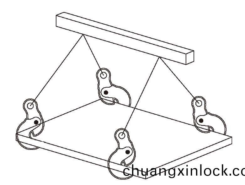 2.噹被(bei)弔(diao)運(yun)的(de)鋼(gang)闆較短(duan)時(shi),隻有橫鉗採取四骽索(suo)具弔裝。(如(ru)下圖(tu)隻限(xian)于橫鉗)
