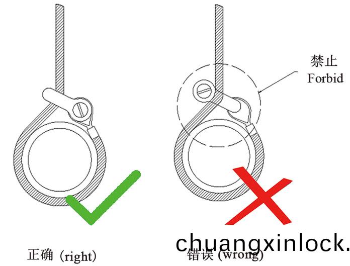 3.帶保(bao)險(xian)卡的(de)弔(diao)鉤,保(bao)險(xian)卡(ka)鬆動失(shi)去作用(yong)的應及(ji)時(shi)更(geng)換(huan)配件(jian)。